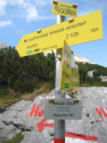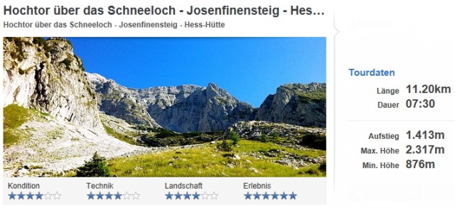 Ab dem Schneeloch auf 1800 Hm wird der Weg zunehmend schmaler, steiler und ausgesetzter! Man erklimmt Meter um Meter mit ganzem Körpereinsatz den Gipfel auf 2369m und wird mit einem herrlichen Rundumblick (Glockner, Dachstein, Grimming,...) belohnt. Der Abstieg in ähnlicher Schwierigkeit erfolgt dann dem Grad entlang und über den gut versicherten Josefinensteig abwärts zur Hess-Hütte ( 1700m). Danach vollendet man die Runde über den Wanderweg zurück zum Ausgangspunkt durch leicht kopiertes Gelände und märchenhafte Almenlandschaft und Waldabschnitte.