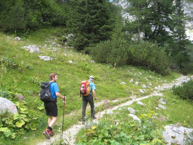 Die Tour startet beim Kölblwirt in Johnsbach auf ca. 900 Hm. Von dort über Wiese und durch den steilen Wald bis zum Hochplateau der Unteren Koderalm. Von dort Richtung Schneeloch. Der Wald lichtet sich, während man sich kontinuierlich nach oben schraubt und immer mehr Blicke auf die weißen Kalkwände und das wunderschöne, alpine Panorama freigegeben werden. Ab hier ist Trittsicherheit gefragt und auch der Einsatz von Füßen und Händen gefordert.
