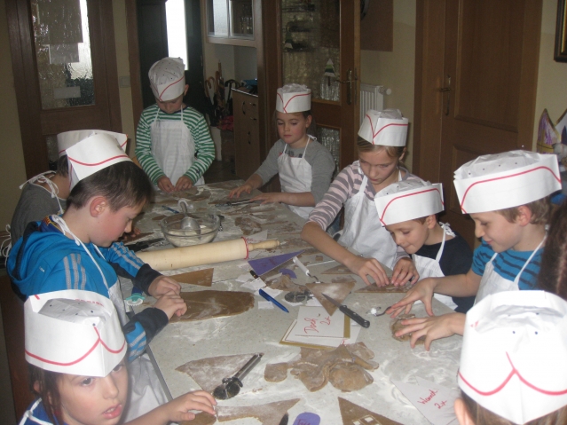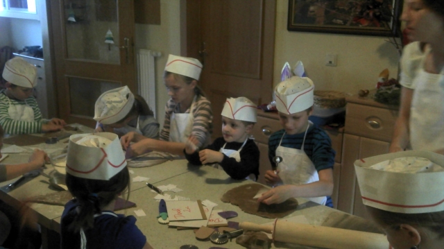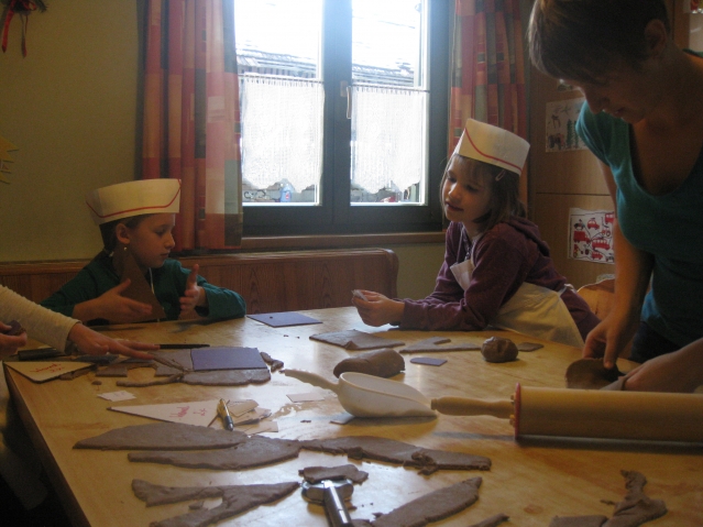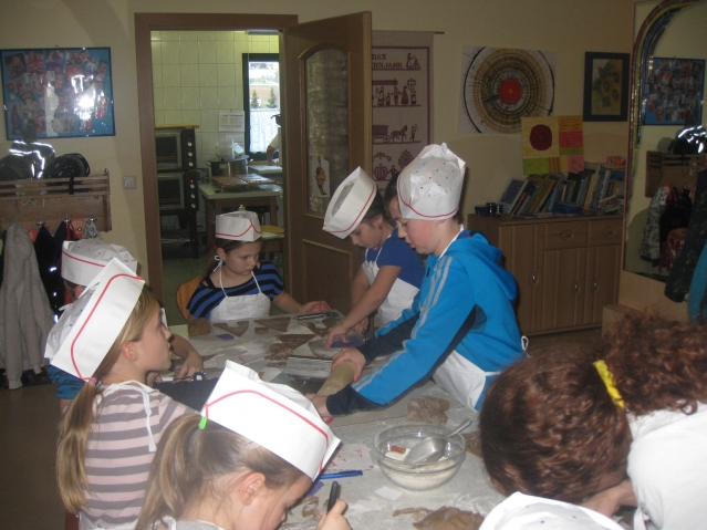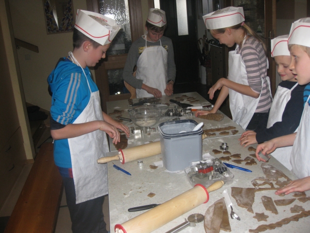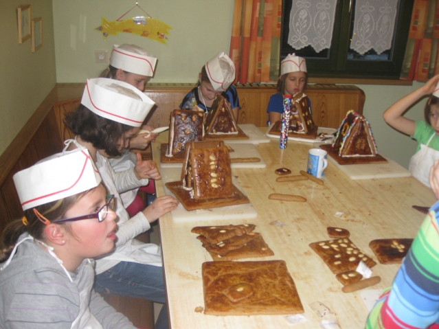 24 kleine Lebkuchenbäcker am Werk. Mit großer Begeisterung und Geschicklichkeit wurden einzigartige Lebkuchenhäuser gebacken und anschließend zusammengebaut. Danke an alle Helferinnen: Elisabeth, Maria, Gerlinde und Lena. Ohne euch wäre dieses Backen nicht gelungen. Ein herzliches Danke auch an den Kulturverein, der die Kosten übernommen hat.