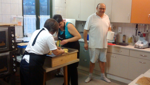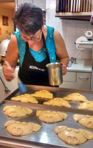 Herzlichen Dank an meine Helfer: Peter, Susanne, Christine und Barbara, die den ganzen Tag geholfen haben, die vielen Glückschweinderl für den Silvesterlauf zu backen.
