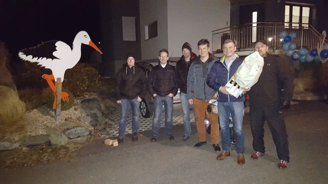 Am 15.1.2016 machte der Kulturverein seine Aufwartung, stellte den Storch und gratulierte dem Papa und den Großeltern.