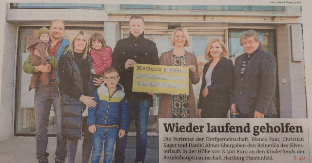 In der Woche Hartberg-Fürstenfeld findet man einen kurzen Bericht über die Spendenübergabe des Silvesterlaufs 2022.