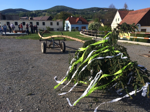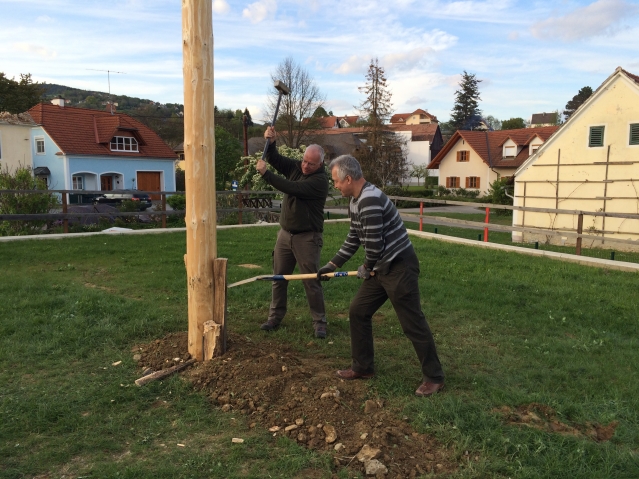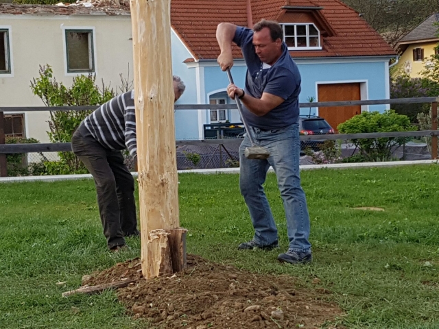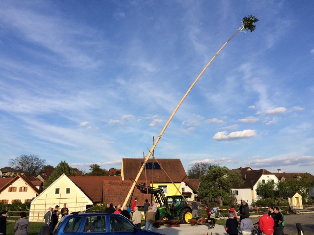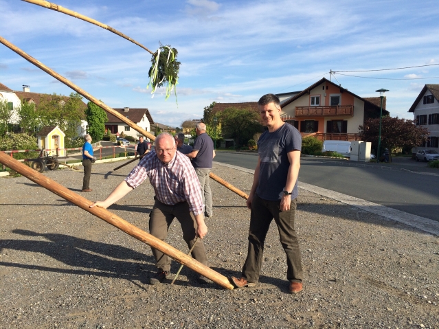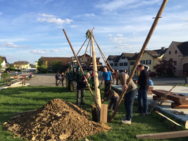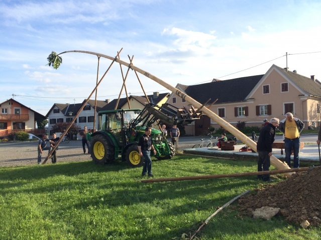 Maibaumstellen am Dorfplatz in Schildbach