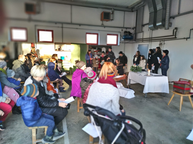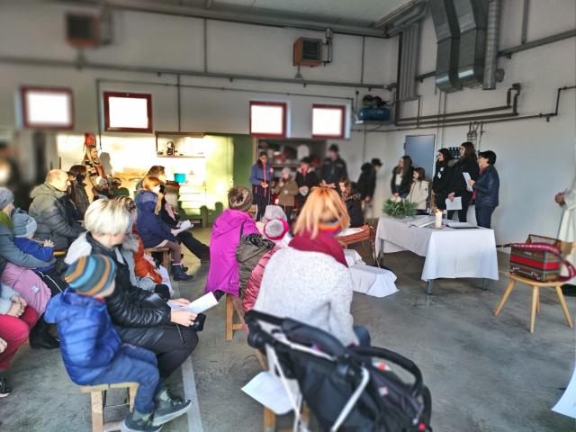 Am Heiligen Abend fand in der Garage der Feuerwehr Schildbach ein Wortgottesdienst statt. Durch den Gottesdienst führten Martin Stögerer als Pastoralassistent und Maria Wilfinger sowie Antonia Wilfinger und einige Jugendliche und Kinder, welche auch das Krippenspiel aufführte.