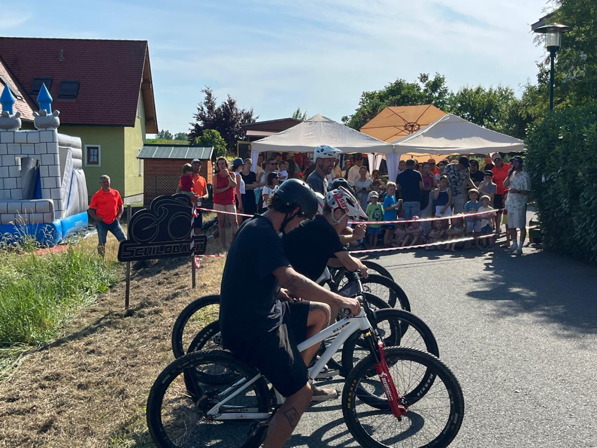 Nach der erfolgreichen Radtour nach Sizilien veranstalteten die Schildbachradler am Samstag, dem 5. Juli 2025, ein Gassenfest/Dämmerschoppen in der Langfeldsiedlung. Neben Essen und Getränken gab es auch eine Verlosung mit tollen Preisen. Höhepunkt war eine grandiose Show der Banana Crew, die spektakuläre Stunts mit ihren Rädern zeigten.