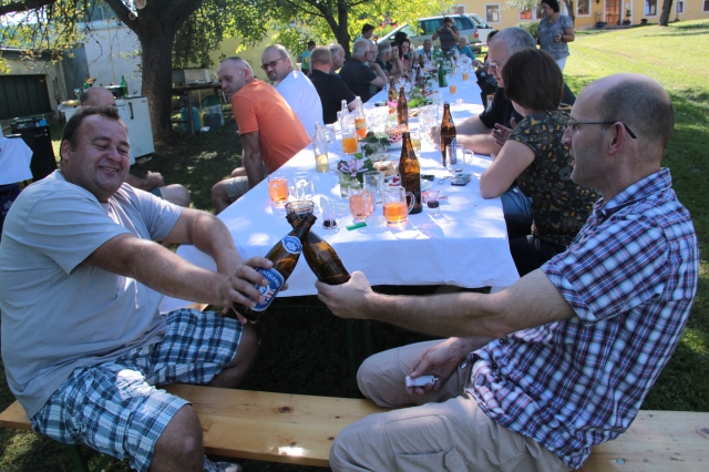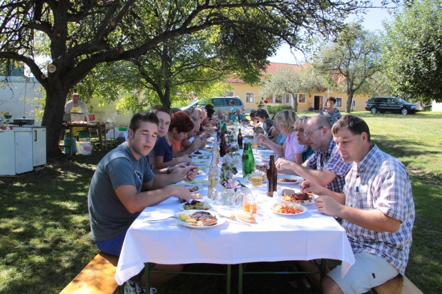 Seit vielen Jahren geliebtes und gelebtes Kommunikationsmedium, hatte außerdem das Nachbarschaftsgrillen heuer einen besoneren Höhepunkt zu bieten. Sechs (+1) runde Geburtstage konnten in diesem Jahr gefeiert werden. Das herrliche Wetter und ausdauernde Gäste trugen dazu bei, dass gleich an drei nacheinanderfolgenden Mahlzeiten aufgegrillt wurde. In bewährter Manier zauberten Günter und Otto die g'schmackigsten Menüs aus der Pfanne. Von den Damen der Runde wurden alle mit Salaten und feiner Mehlspeise verwöhnt. Ein herzlichen Dankeschön den "Runden" - (auf den Bildern ersichtlich) für die Organisation und nochmals alles Gute und viel Gesundheit von den verwöhnten Gästen.