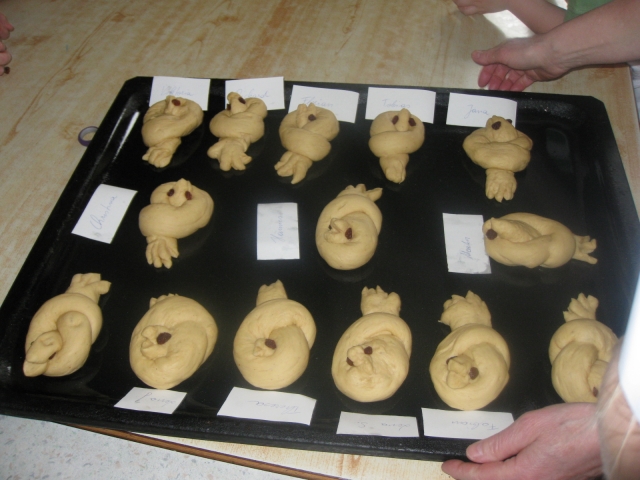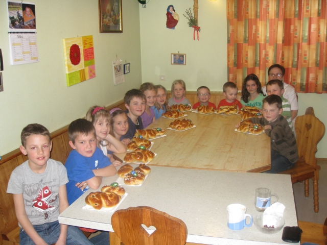 Am Beginn der Karwoche stellten 13 Kinder unter Mithilfe von Gerti ihr Können unter Beweis. Mit der richtigen Bekleidung ging´s los. Die Begeisterung war groß, auch der SApaß kam nicht zu kurz. Die Mühe hat sich gelohnt. So entstanden Nesterl, Piperl und Haserl. Die Endprodukte können sich sehen lassen.