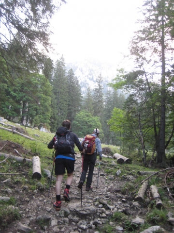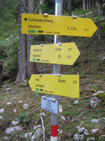 Die Tour startet beim Kölblwirt in Johnsbach auf ca. 900 Hm. Von dort über Wiese und durch den steilen Wald bis zum Hochplateau der Unteren Koderalm. Von dort Richtung Schneeloch. Der Wald lichtet sich, während man sich kontinuierlich nach oben schraubt und immer mehr Blicke auf die weißen Kalkwände und das wunderschöne, alpine Panorama freigegeben werden. Ab hier ist Trittsicherheit gefragt und auch der Einsatz von Füßen und Händen gefordert.