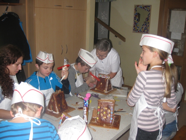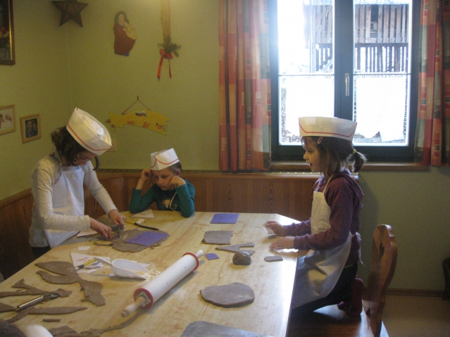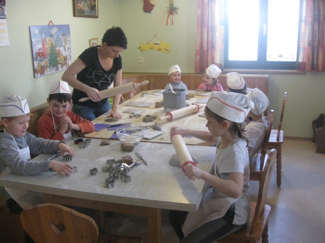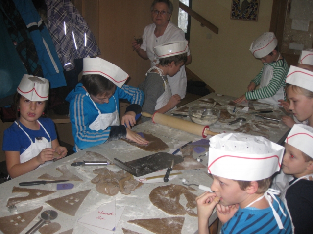 24 kleine Lebkuchenbäcker am Werk. Mit großer Begeisterung und Geschicklichkeit wurden einzigartige Lebkuchenhäuser gebacken und anschließend zusammengebaut. Danke an alle Helferinnen: Elisabeth, Maria, Gerlinde und Lena. Ohne euch wäre dieses Backen nicht gelungen. Ein herzliches Danke auch an den Kulturverein, der die Kosten übernommen hat.
