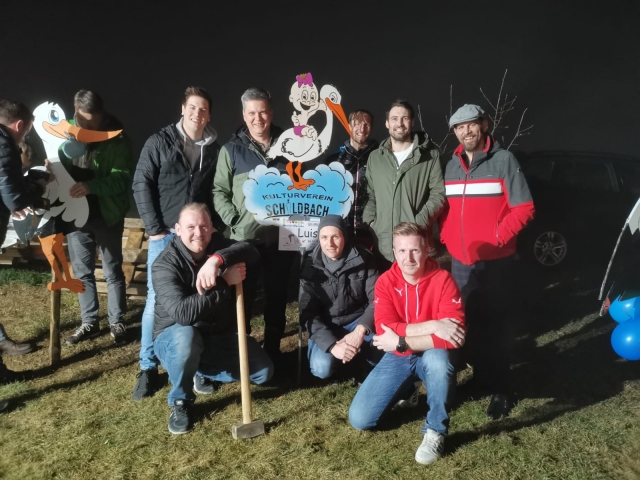 Die Dorfgemeinschaft Schildbach durfte wieder einen Storch stellen, diesmal in der Schildbergsiedlung bei Alexandra und Daniel Almer.