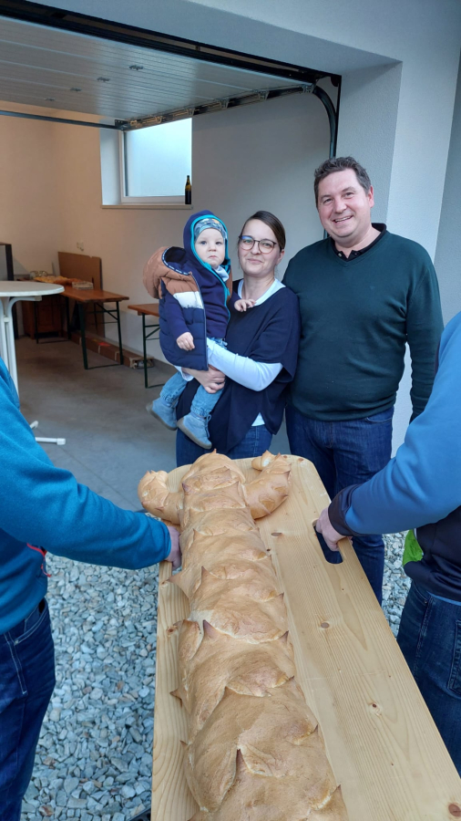 Am 26.04.2024 war die Dorfgemeinschaft zu Gast bei Franz Moser und Van Dai Do-Ehrenhöfer um ihnen den Sprungstriezel zu bringen.