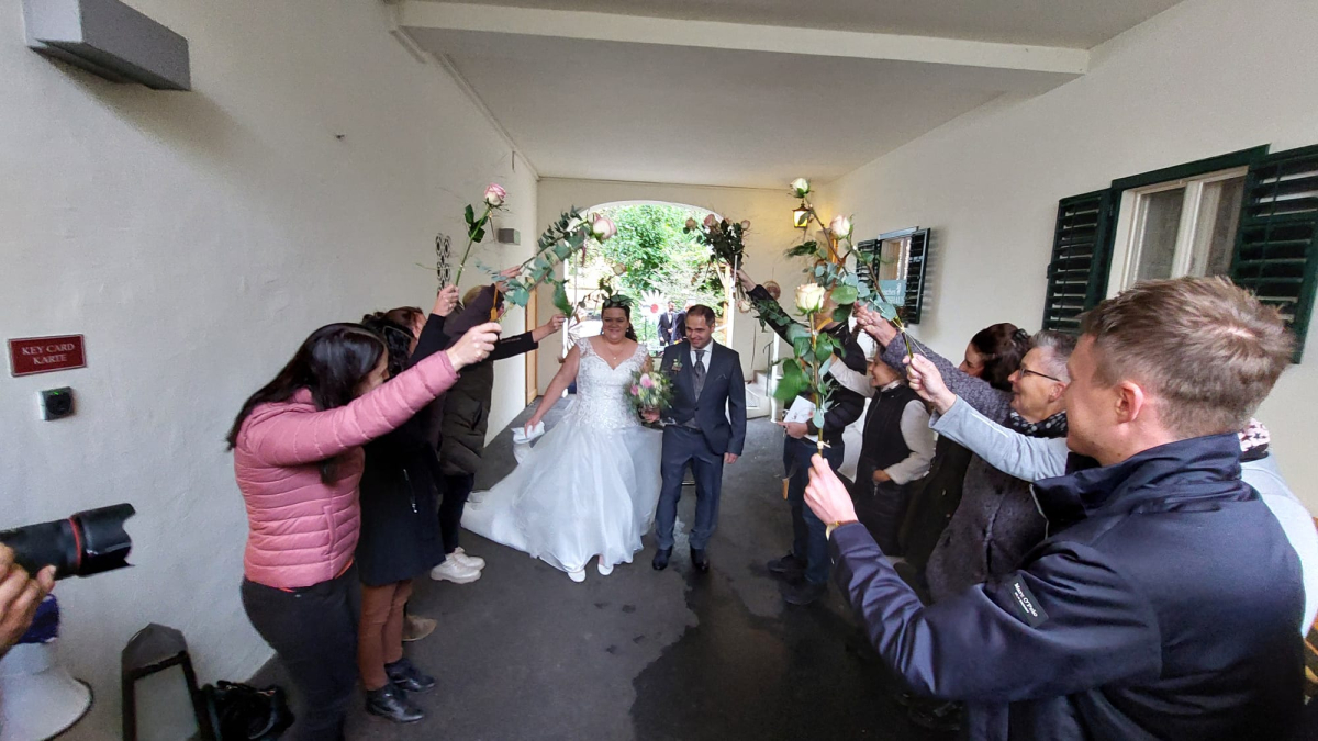 Wir freuen uns, dass wir herzlich empfangen wurden und dem Brautpaar eine Freude bereiten konnten.