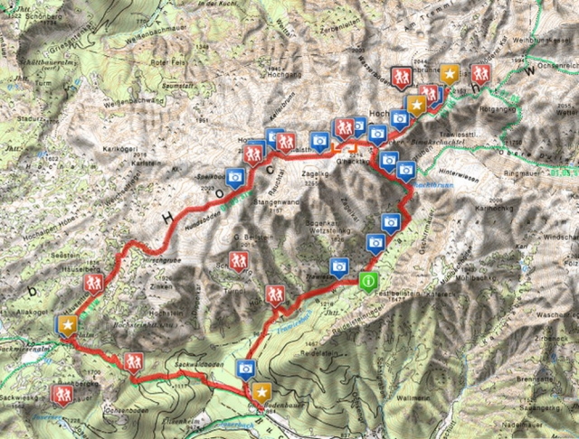 Der Rückweg zur Fleischerhütte in westlicher Richtung über den Rauchtalsattel und die Hundsböden zur Häuselalm. Von dort wieder zurück zum Gasthaus Bodenbauer.