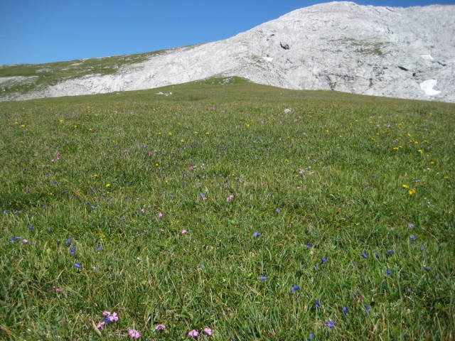Vom Gasthaus Bodenbauer auf die Trawiesalm über das G`hackte, auf die Hochfläche beim G`hacktkogel, vorbei an der Fleischer Biwakhütte auf den Hochschwabgipfel (2277m)