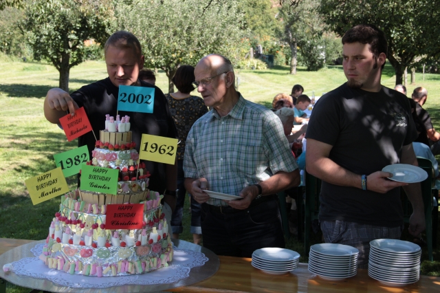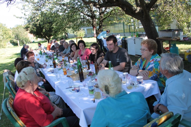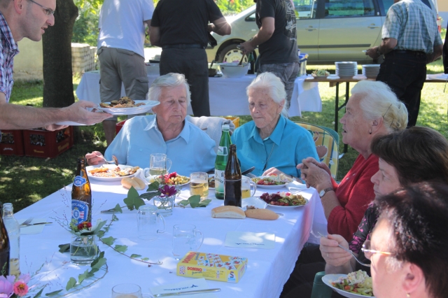 Seit vielen Jahren geliebtes und gelebtes Kommunikationsmedium, hatte außerdem das Nachbarschaftsgrillen heuer einen besoneren Höhepunkt zu bieten. Sechs (+1) runde Geburtstage konnten in diesem Jahr gefeiert werden. Das herrliche Wetter und ausdauernde Gäste trugen dazu bei, dass gleich an drei nacheinanderfolgenden Mahlzeiten aufgegrillt wurde. In bewährter Manier zauberten Günter und Otto die g'schmackigsten Menüs aus der Pfanne. Von den Damen der Runde wurden alle mit Salaten und feiner Mehlspeise verwöhnt. Ein herzlichen Dankeschön den "Runden" - (auf den Bildern ersichtlich) für die Organisation und nochmals alles Gute und viel Gesundheit von den verwöhnten Gästen.